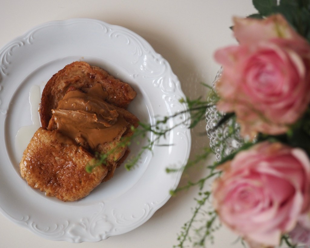 - Plate the french toast slices and finish the dish by adding maple syrup and Biscoff spread on top. Then ENJOY 💛